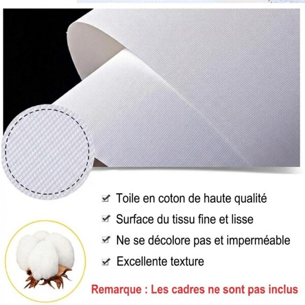 La toile en coton de haute qualité garantit une impression nette et durable qui conservera sa beauté au fil du temps.